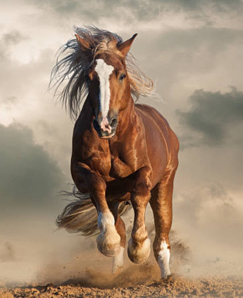 駆け抜ける馬の姿は、迷いを振り切り、進むべき未来に向かって飛び越えていく力の象徴。