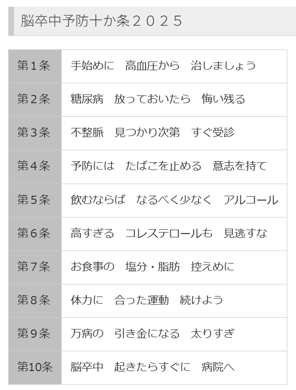脳梗塞の兆候に気付くのも重要ですが、ならない様にするのが一番ですね。