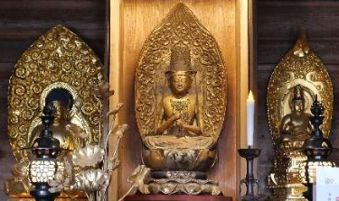 講堂の須弥壇 (しゅみだん:本尊を安置するための一段高い壇) に登場。