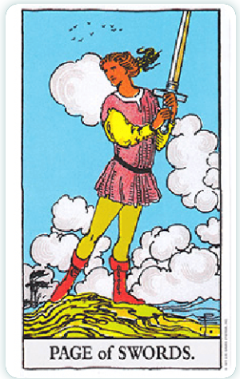 「ソード」は知性や意識の高さを表しており、優位でありたかったり挑戦的な性質があります。ペイジの年齢層は学生時代の男女を示します。このカードは感情ではなく理性をもって、どんな環境にもめげずに挑戦していくことを教えてくれます。ぜひ、ご参考まで。