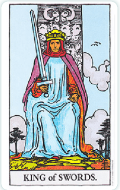 「ソード」は知性や意識の高さを表しており、優位でありたかったり挑戦的な性質があります。そして年齢層は50代以降の男性、父親などを示します。このカードはコートカードで唯一、視線も体も真正面を向いています。つまり、どんなことも正面から受け止める力と現実から目を逸らさない精神力の高さを教えてくれています。ぜひ参考にして頂けたらと思います。